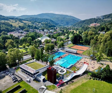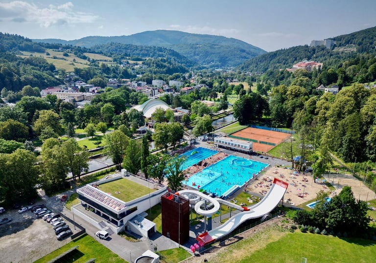 Basen odkryty w Wiśle to dobry pomysł na gorące popołudnie, kiedy szlak turystyczny odpada a leżak przy chacie już trochę nudzi.