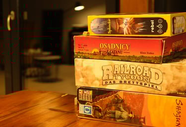 Kilkanaście pozycji na wiszącym regale w jadalni. Carcassonne, Wsiąść do Pociągu, Tajni Agenci, Zaginione Miasta, Koncept, K2. Coś dla tych co lubią rywalizować i coś dla tych co wolą współpracować. Wieczór przy planszówkach w górskiej chacie ma swój niepowtarzalny klimat.