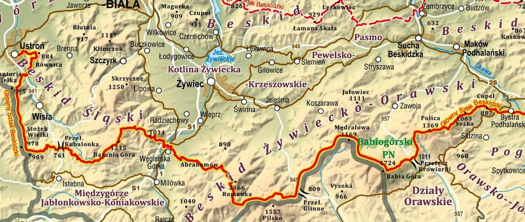 Najwygodniej dotrzeć pociągiem do stacji Ustroń lub Ustroń Polana. Szlak GSB zaczyna się dosłownie przy peronie. Stamtąd czerwone znaki prowadzą cię przez Równicę i Czantorię na Soszów. To trasa dla tych, którzy chcą zaliczyć porządny odcinek i mają w nogach co najmniej 5–6 godzin marszu.