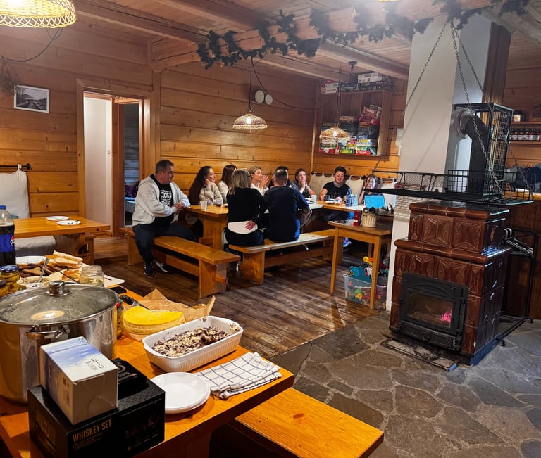 Przyjmujemy grupy, które potrzebują spokojnego miejsca z dala od miasta, noclegów i wyżywienia. Nie mamy osobnej sali konferencyjnej ale jadalnia i przestrzeń wspólna sprawdza się doskonale przy warsztatach do kilkunastu osób. Gościliśmy już grupy szkoleniowe, instruktorów, uczestników preselekcji do służb mundurowych i wiele innych. Jeśli Wasza grupa potrzebuje skupienia i dobrego jedzenia — jesteście we właściwym miejscu.