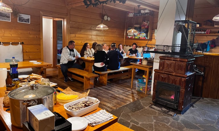 Poza sezonem zimowym obiadów nie gotuję — ale jeśli przyjeżdżacie w grupie minimum 10 osób albo wykupujecie Chatę Pod Jaworem na wyłączność, możemy o tym porozmawiać.